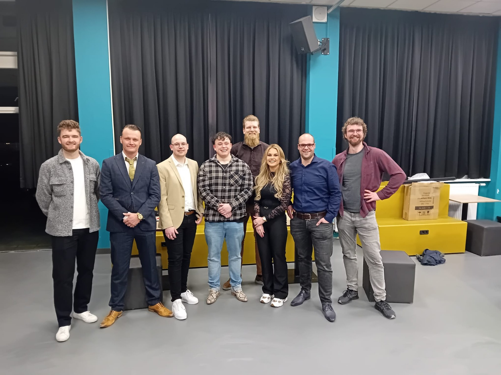 Van links naar rechts: Lars Elzinga, Michiel Lukas, Tom Bouwman, Mitchell Wendels, Hielke Eggink, Naomi Spijker, Jan van der Poel en Steph Klaren